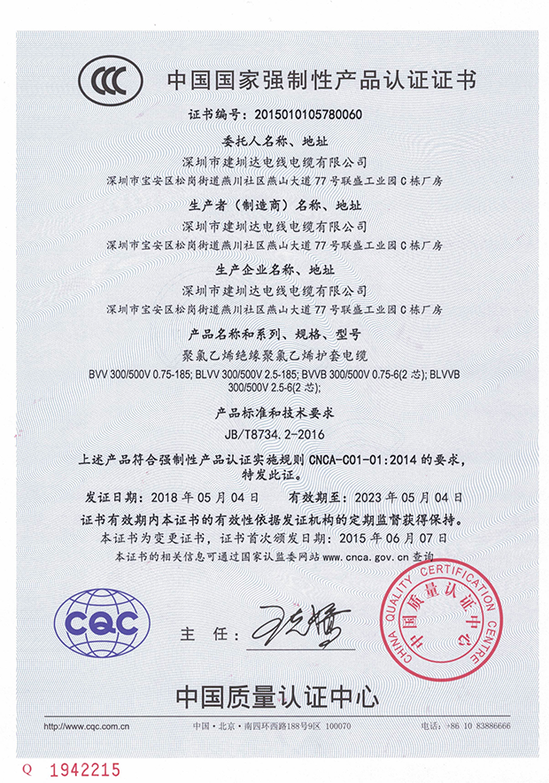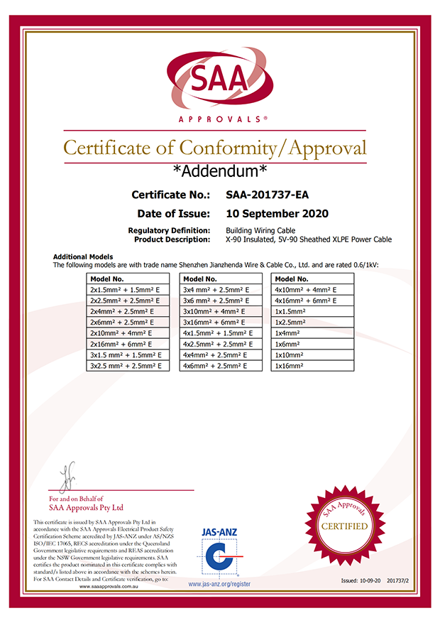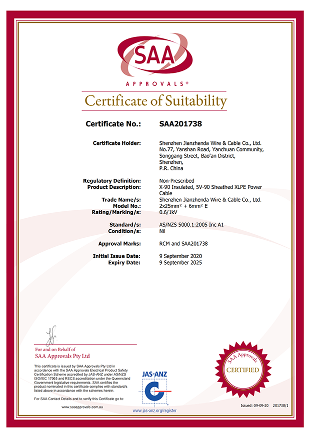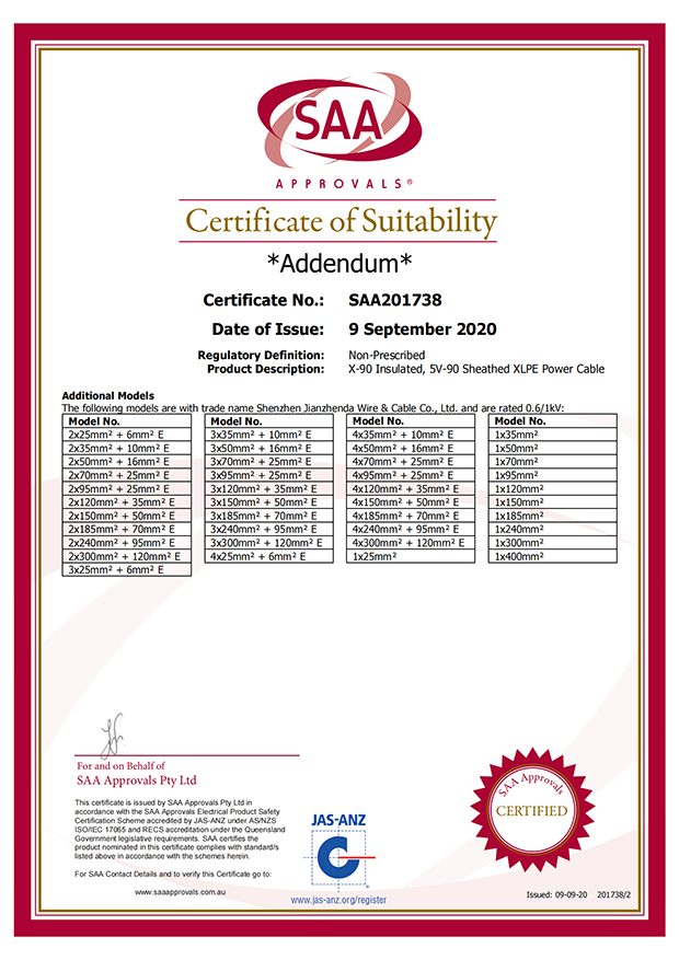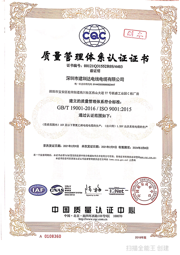 深圳建圳達(dá)電線(xiàn)電纜有限公司,成立于2000年,是一家電線(xiàn)電纜制造商,我們通過(guò)了世界各地不同市場(chǎng)的多數(shù)認(rèn)證,如:CCC、RoHS、CB、SAA、TUV、VDE、PSE、BPS、UL、CSA。我們根據(jù)定制產(chǎn)品不斷更新新的認(rèn)證。經(jīng)過(guò)數(shù)十年的發(fā)展,我們與來(lái)自世界各地的客戶(hù)建立了長(zhǎng)期的合作關(guān)系。我們?cè)?jīng)是菲律賓機(jī)場(chǎng),,柬埔寨的電力站,美國(guó)的醫(yī)院,工廠(chǎng),埃塞俄比亞的水電站項(xiàng)目。我們是一家值得信賴(lài)的電線(xiàn)供應(yīng)商。